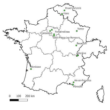 La deuxième partie de ma thèse s’appuie sur une expérience de terrain, déjà effectuée en 2021 et répétée en 2022. Dans une quinzaine de villes de France, Belgique et Suisse (Figure 2), l’objectif est d’y estimer la fonction de pollinisation. Pour cela, nous utilisons une plante dite « pollinomètre » (qui mesure la pollinisation) : la moutarde blanche, Sinapis alba.